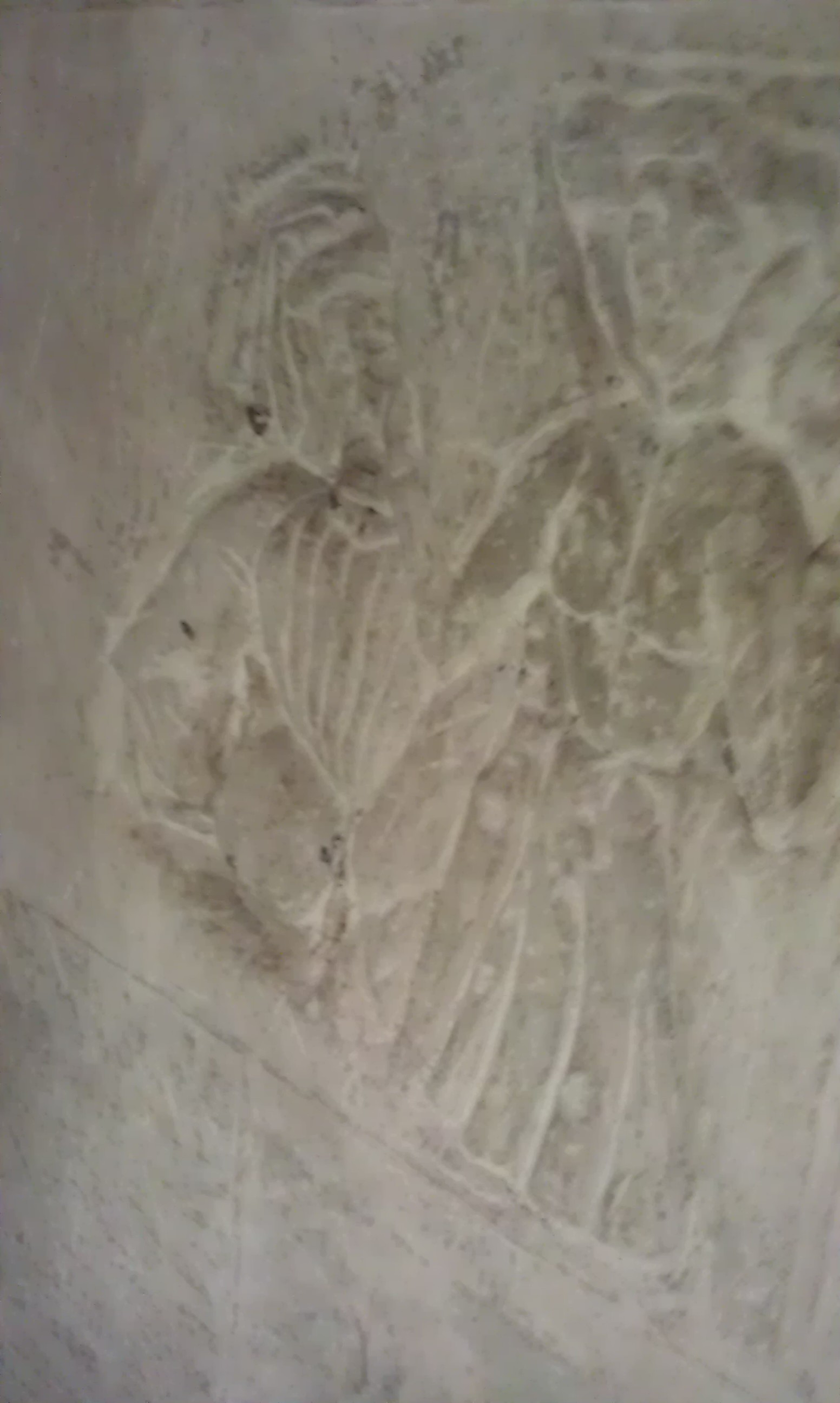 graffiti medieval style. I can only assume that sermons were very long indeed! It wasn’t until we finished and I had a close look at the pillar, that I realised we’d put the tree up, right in front of some old medieval graffiti. It’s something that people who like this sort of thing, come to see. We feel a bit guilty that we’ve temporarily obscured the view.