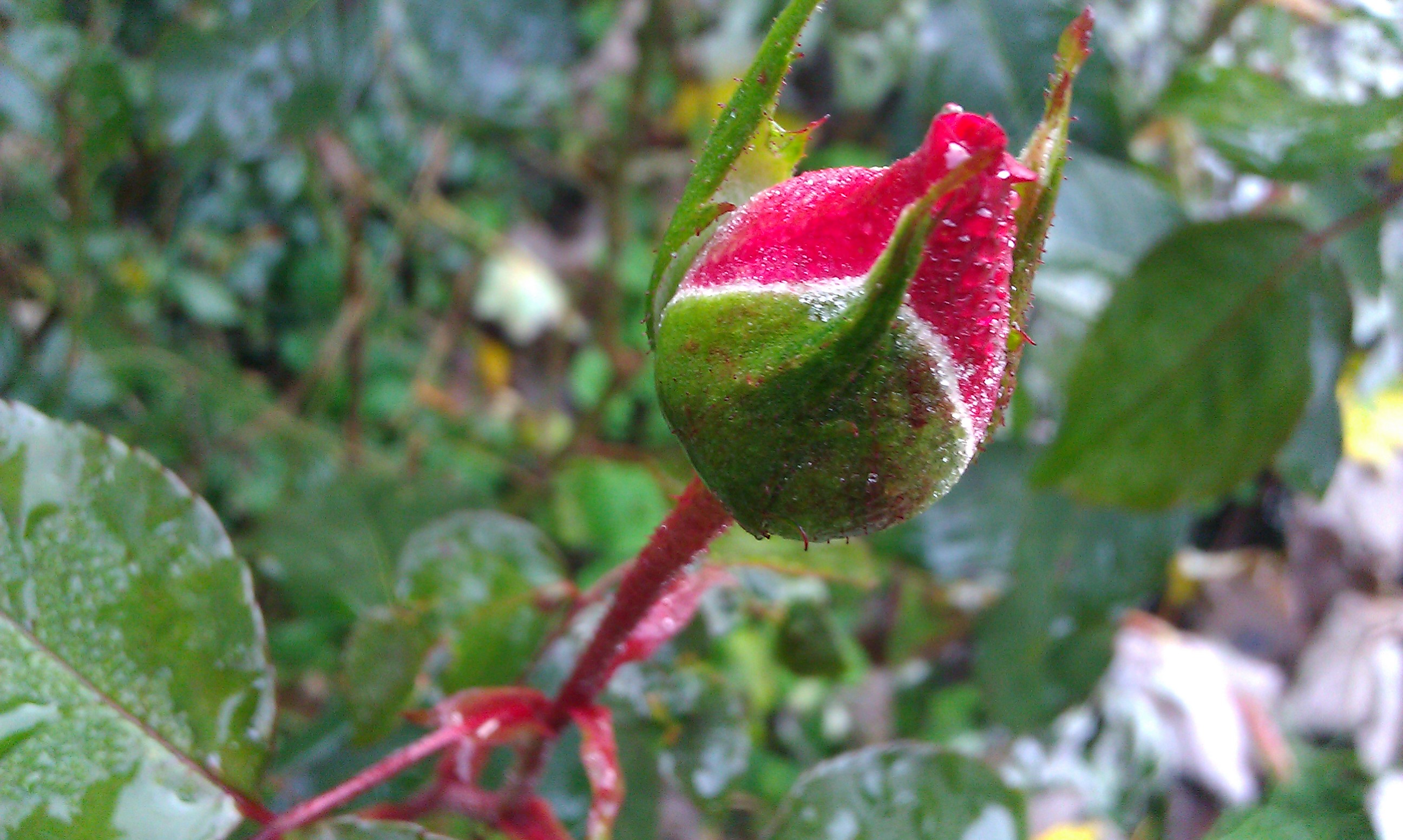 We’ve had a few frosts here this week. Yesterday, I couldn’t help noticing that one of my roses was still putting out blooms.