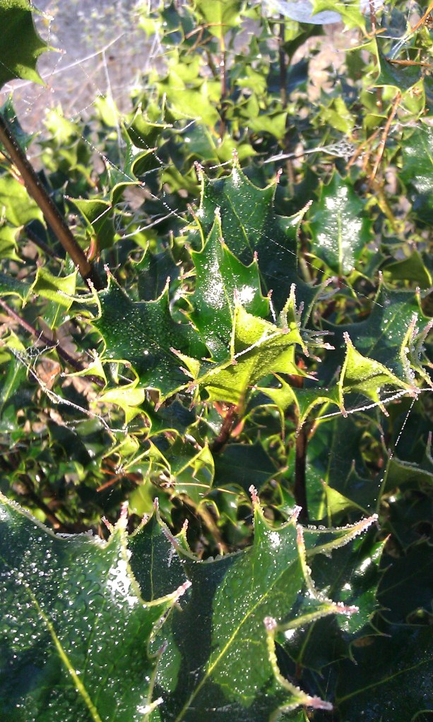 The cobwebs in the holly were glistening, shafts of sunlight were pushing through the trees, tiny drips of melting frost tickled my neck. This was truly stunning – sublime indeed.
