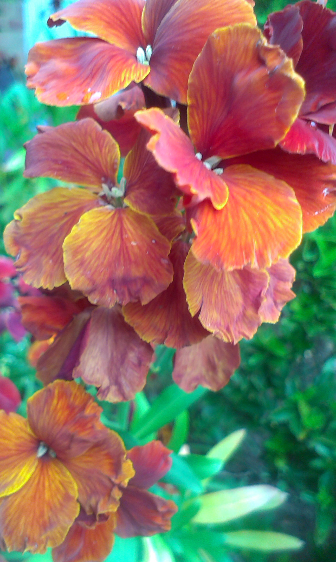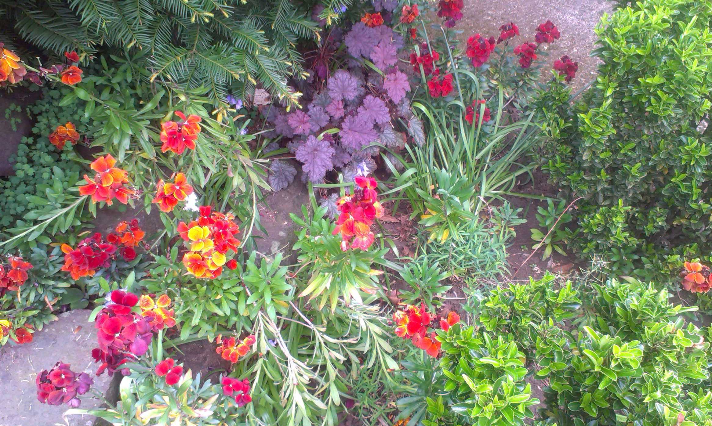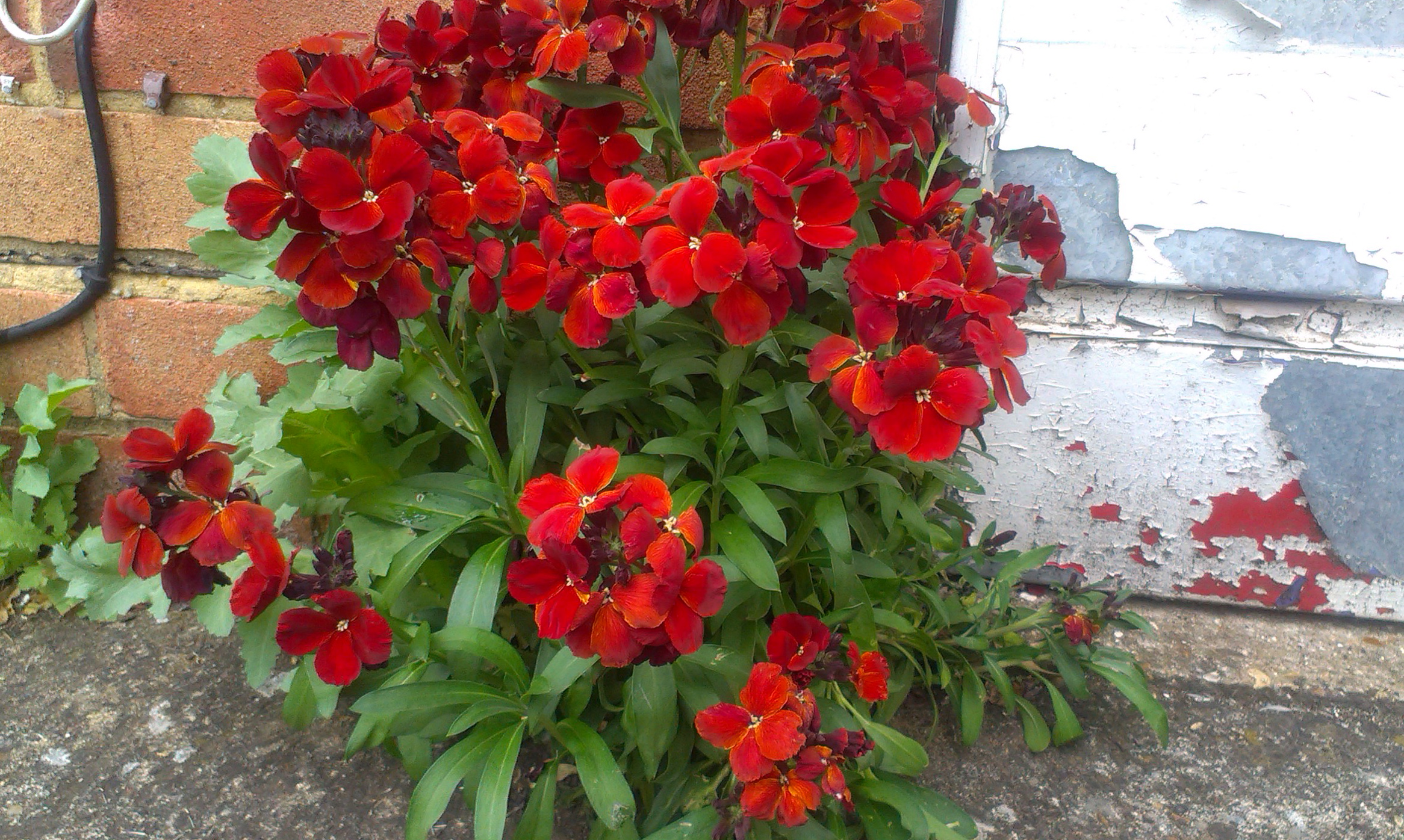 And I am convinced that nature has a wonderful sense of style – how else would she arrange for a self-seeded wallflower to grow against the peeling paint of the garage door – and match the shade of paint peeping through?