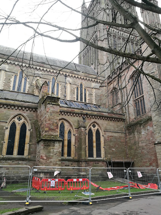 First, a trip to Worcester with both daughters. We were there a few days after Storm Arwen which had brought down one of the stone pinacles from the tower of the cathedral, which crashed through the roof below. If you look carefully you might be able to see where the tarpaulin is now covering the hole. The pincacle came from high up on the tower, so all-in-all I’d say it was lucky not to have been a worse outcome.